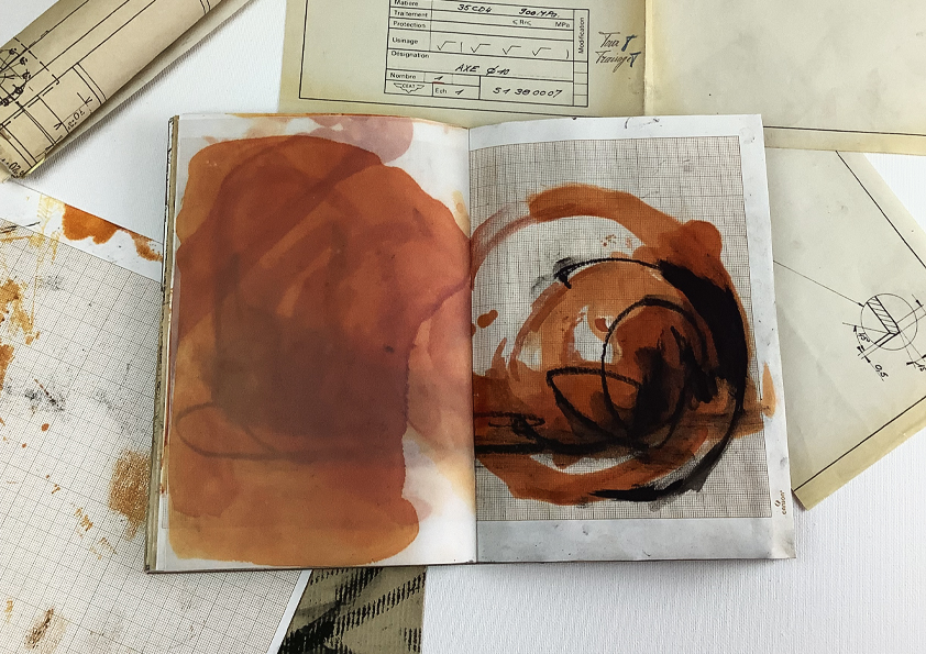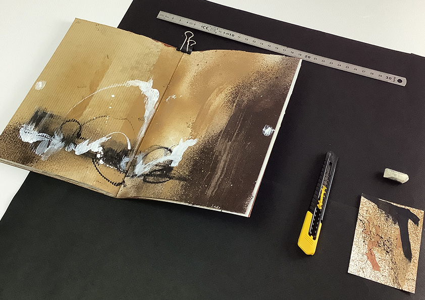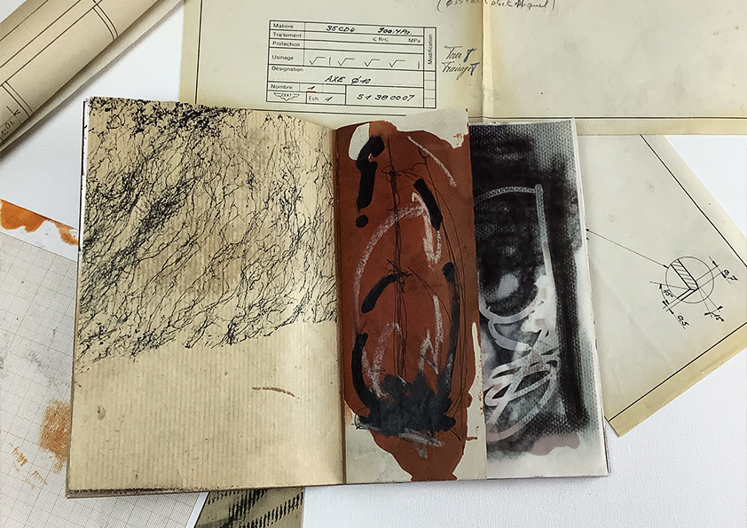 Livre unique entièrement réalisé à la main - Ce livre dont toutes les pages sont des peintures originales est une réflexion abstraite sur la trace et les textures. Pensé comme un livre-objet il est à la fois l'oeuvre et l'archivage..